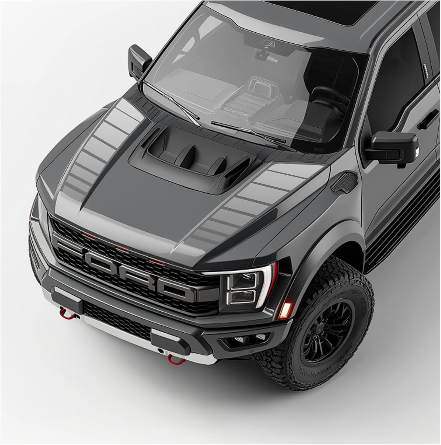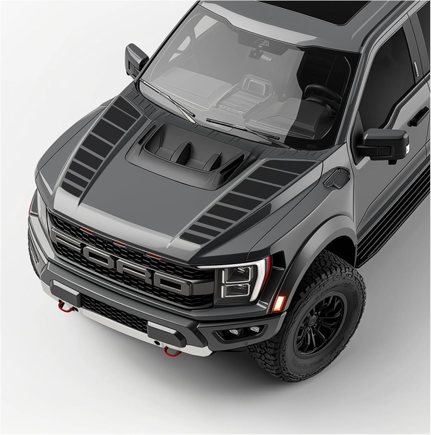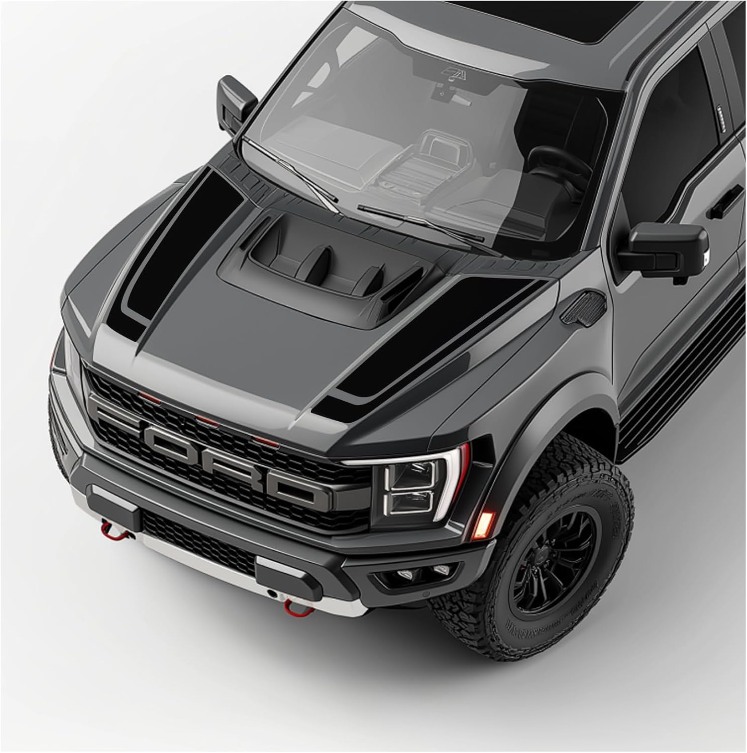Compatible with these Years: 2021-2025 and up. Benini Design Studio decals are made of 3mil, durable vinyl that will give your car or truck a custom look without the price or commitment of a new paint job. They are easy to apply yourself, and each kit comes with an installation guide to help you have a smooth installation process. Our decals have a 6-year outdoor durability rating for resisting peeling, scratching, and UV damage. Whenever removal is necessary, the vinyl will come up easily without damaging the paint of the car. We pride ourselves in supplying high quality, factory-grade graphics at low prices. Add a touch of style to your cars with the finely-designed racing stripe decal graphics. These vinyl graphics feature an elegant design that suits every color and boosts the overall appearance. The hood blackout racing stripes are manufactured using premium-quality vinyl that offers a high-performance 7year life making it perfect for prolonged use. The vinyl graphics do not wear out easily even in unfavourable weather conditions. These come with water-resistant properties enhancing the overall performance. The racing stripe vinyl graphics are quite easy to use and can be installed using the wet or dry method. You first need to clean the appropriate area where the decal graphic has to be applied and then you can carefully apply it over that area. Professional installation is recommended for beginners. Made in the USA; the decal vinyl graphic gives a customized appearance to your car and is ideal for placing over the front hood of the vehicle. Please make sure your truck has the hood pictured for perfect fitment.